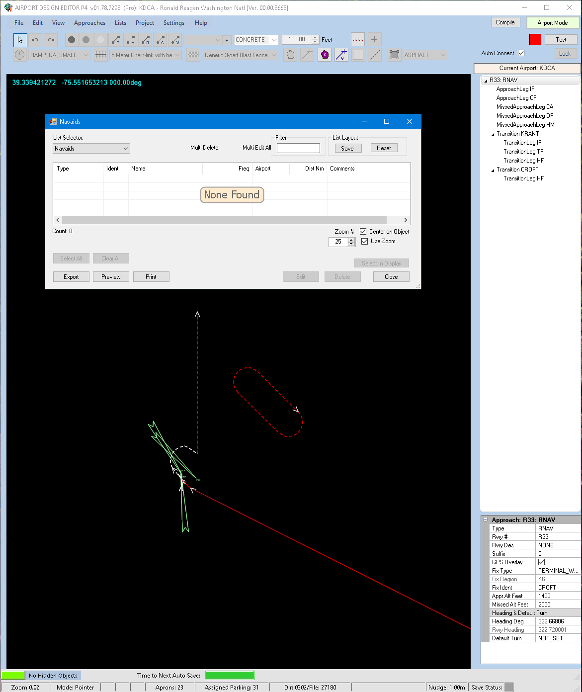 So, I compiled it, and no matter now many different ways I compiled, the .bgl still had only 1 NAVAID listed! By the way, the Intersection that was needed for runways 24 L/R and 28 was DJB and it was not there in the .bgl and was there in the .ade. So, as a final test today, I loaded the .bgl from WashingtonX for KDCA and went to approach mode. Sure enough, there were approach errors, I specifically looked at RNAV33, and sure enough, there was only 1 NAVAID listed.