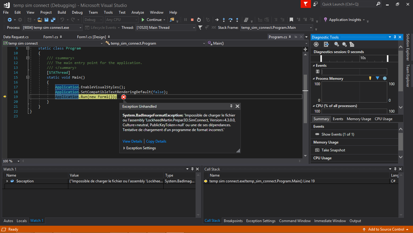 C# Error after compile / Simconnect