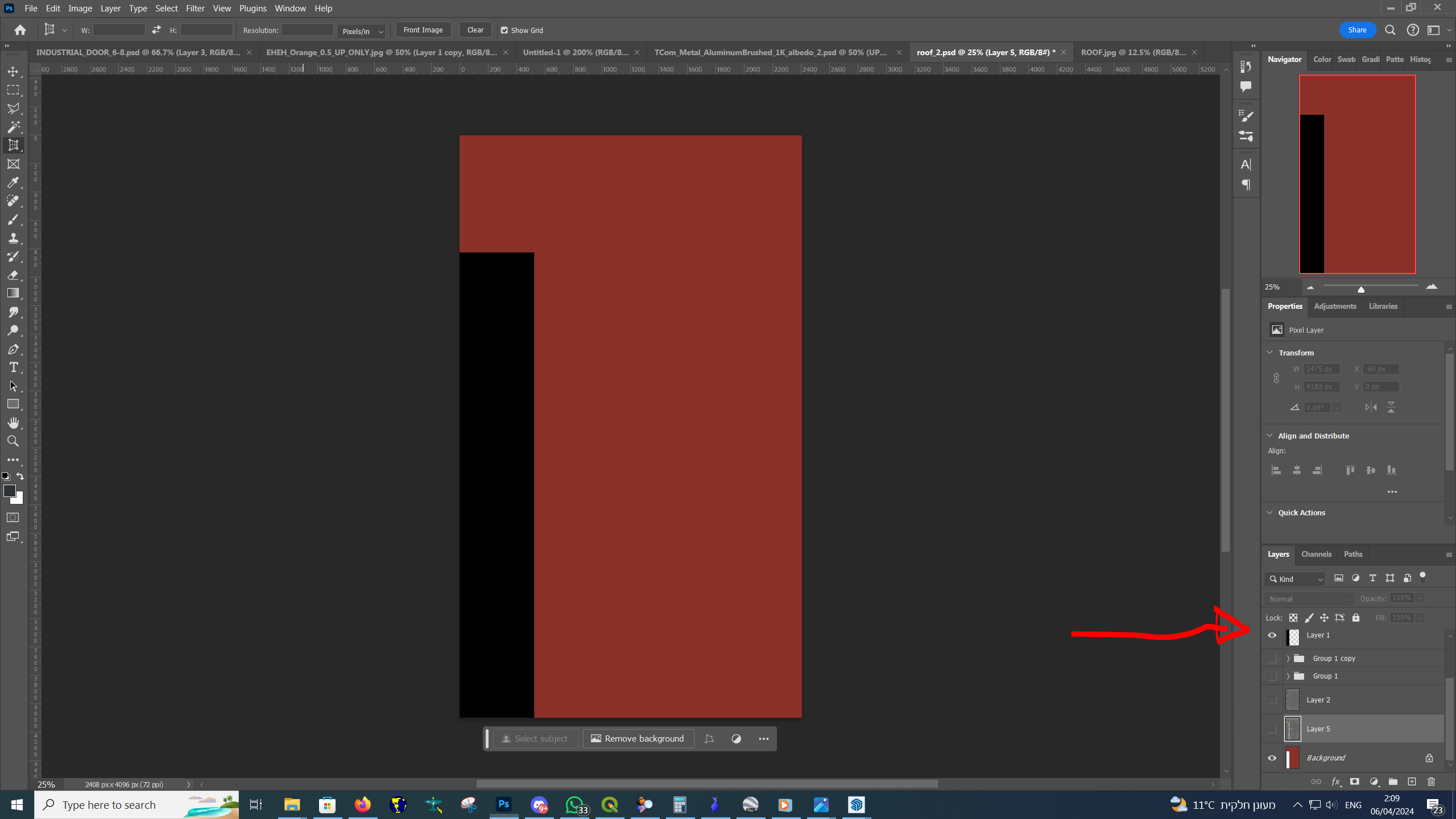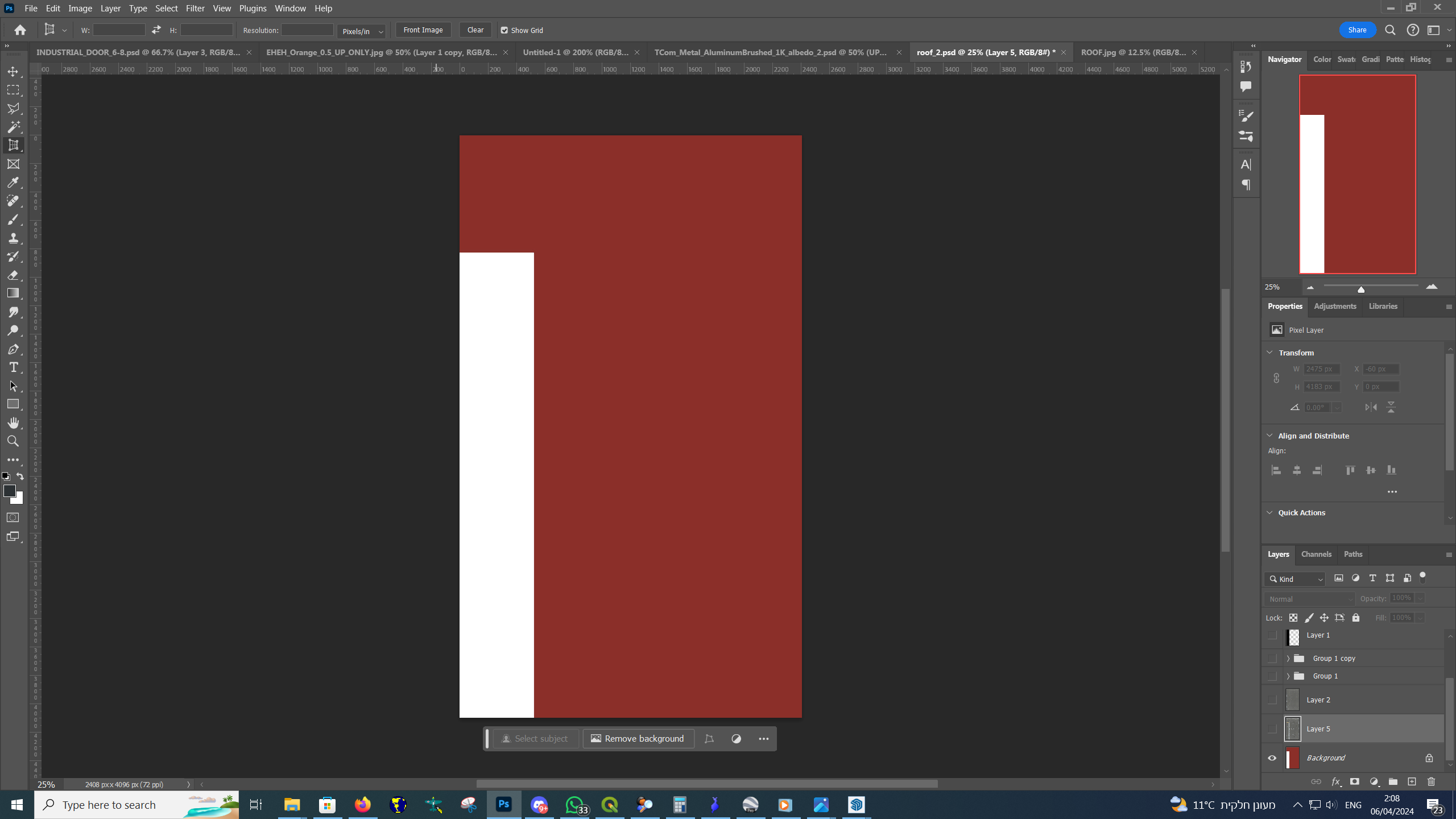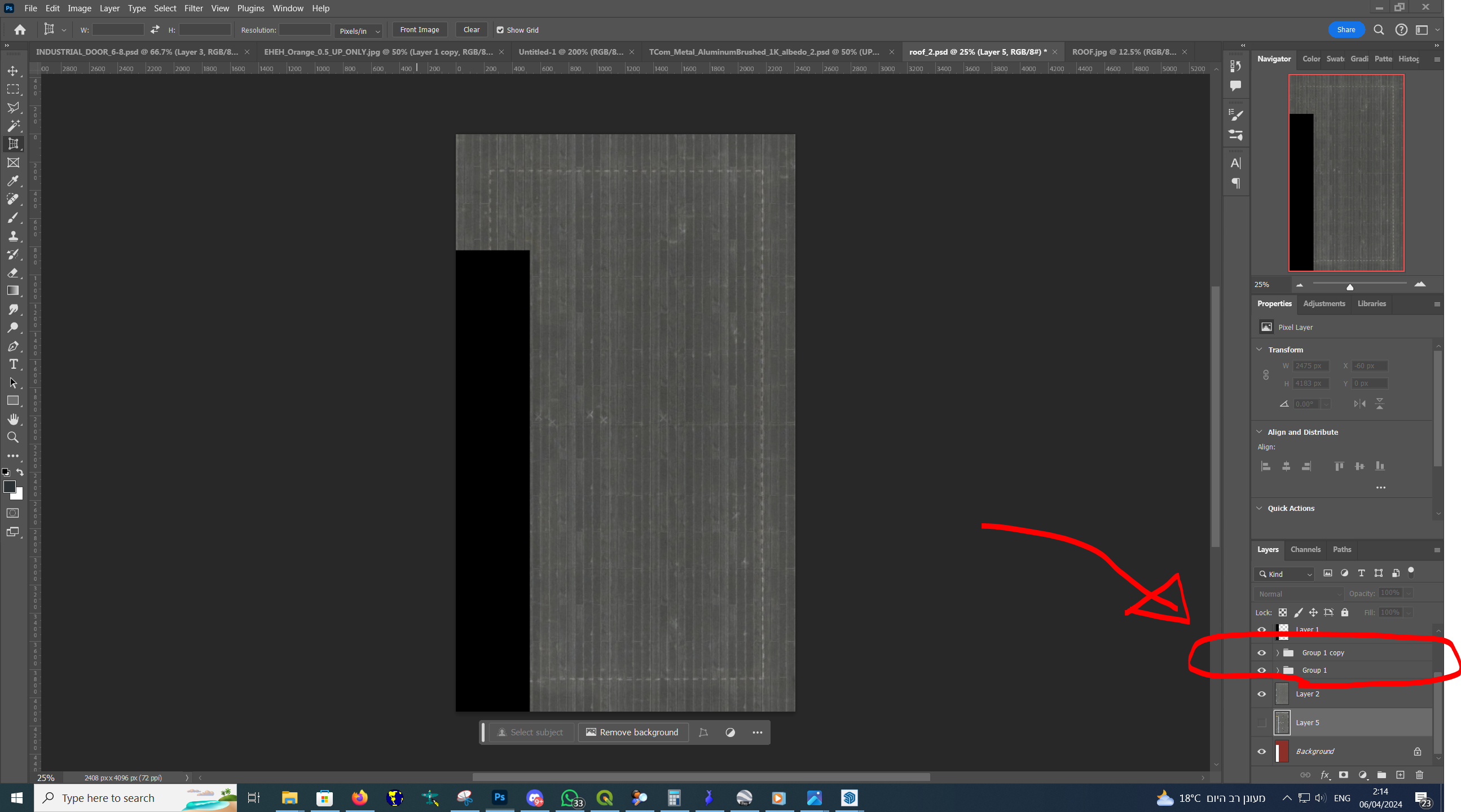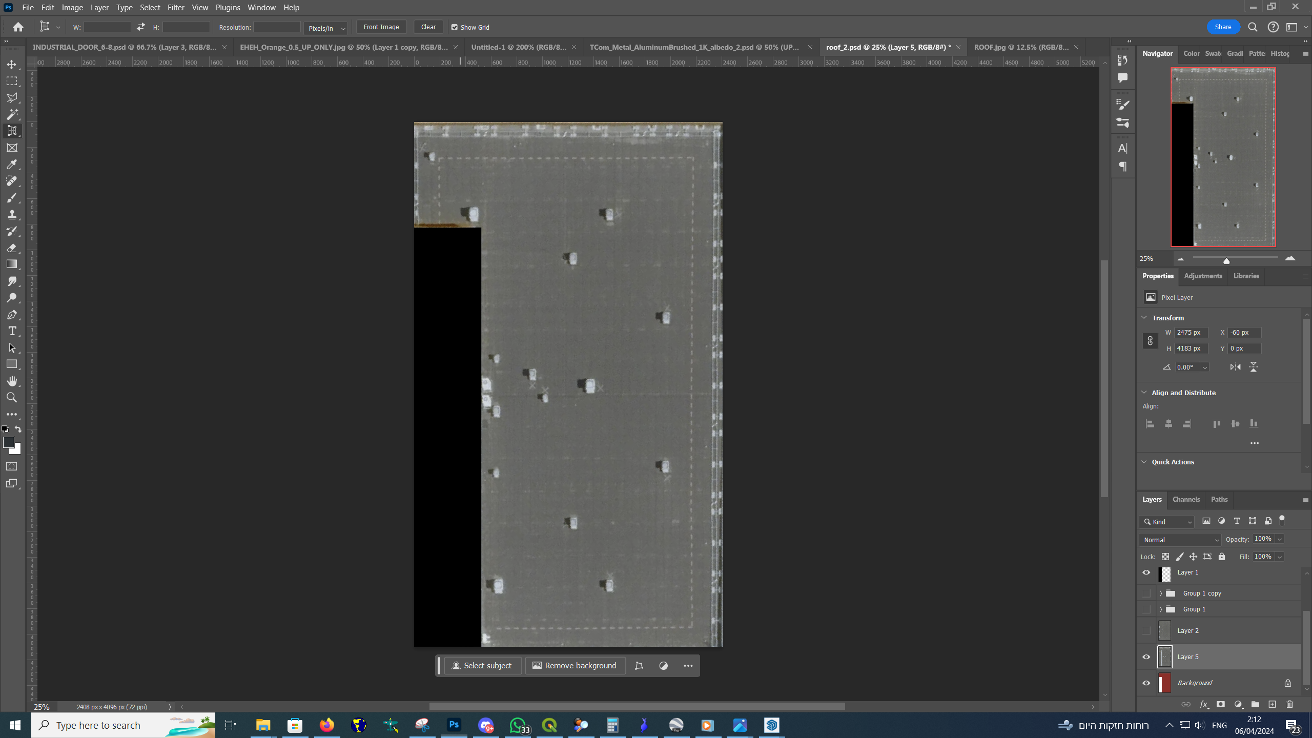 and now I'm adding the seamless texture of the bitumen roof (I'm trying to align them with the layout of the aerial image' you can see the border of each bitumen sheet, so I'm trying to align with them)