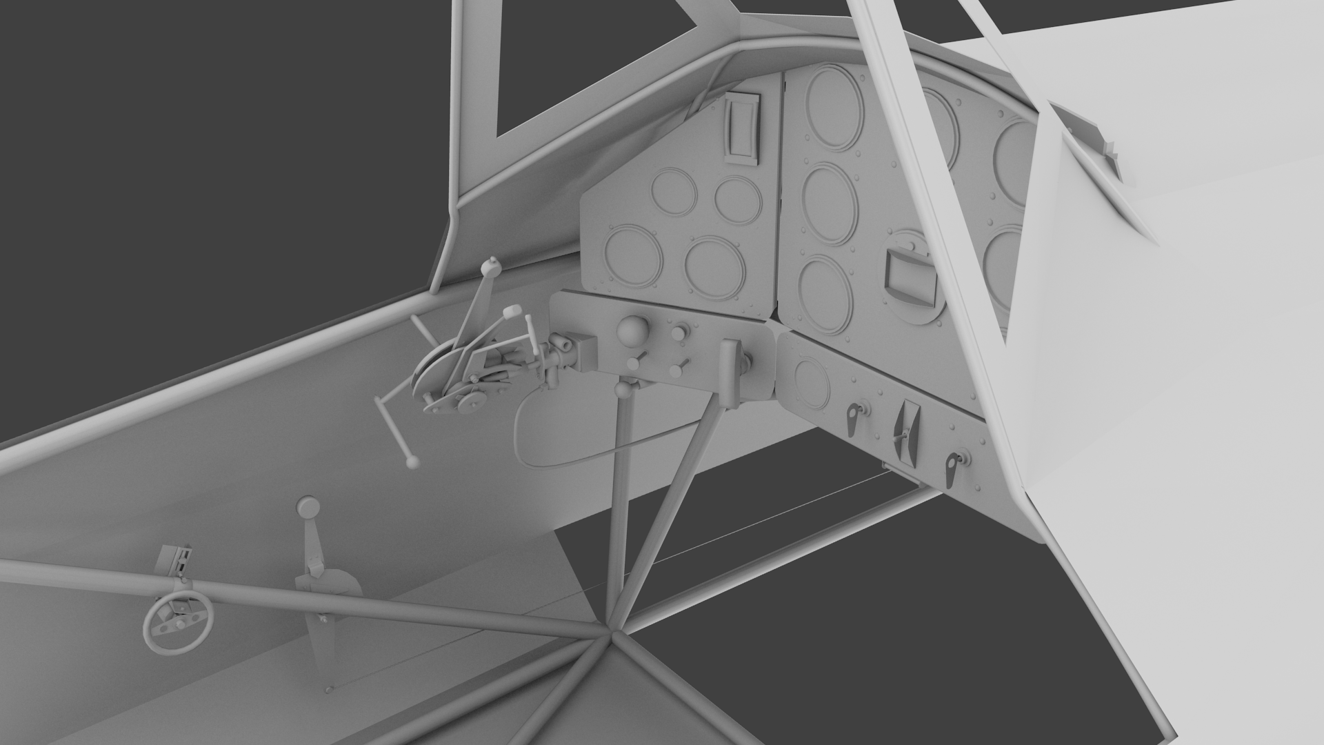 Quite a difficult cockpit by the way: nothing is hidden by panels or in boxes. All wires (OK, not a lot:)) and tubes must be modelled, but also animated. That will be a more precise job...