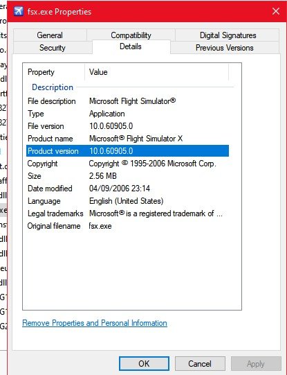 4. Properties of FSX.exe/and or Startup screen, make no mention at all of any modification