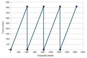 The second part (named mod_2) will have to be changed, as our animation now has 4096 instead of 1024 frames. So we need to interpolate between 0 and 4095 now. The picture below shows how our sawtooth of the interpolation needs to look now.